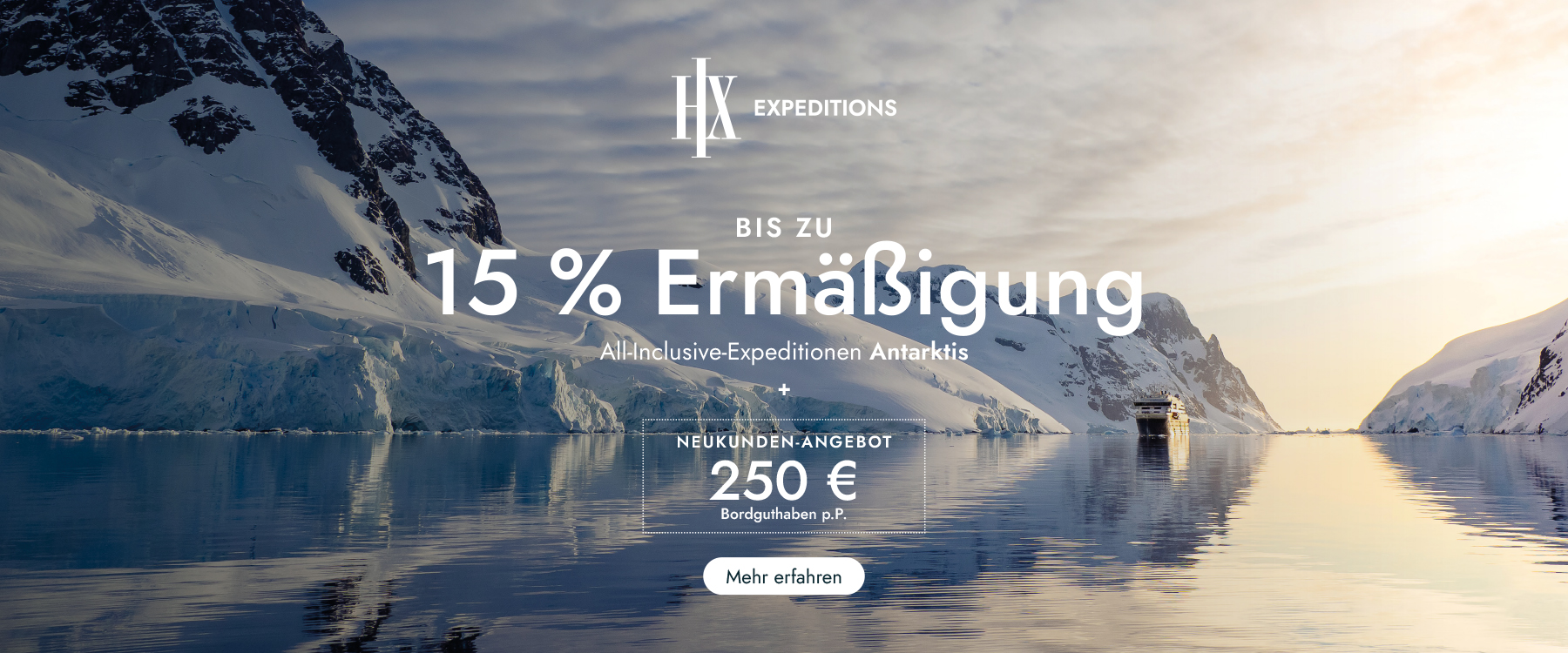 Blick über die Reling eines Kreuzfahrtschiffs auf das offene Meer. Die Kielspur des Schiffs zieht sich in die weite, blaue Ferne.